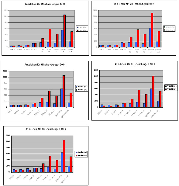 Die Verfasser sind zu dem erschütternden Ergebnis gekommen, dass es bei Mädchen ab ihrem 12. Lebensjahr kontinuierlich extrem mehr Hinweise auf Misshandlungen als bei Jungen gibt.