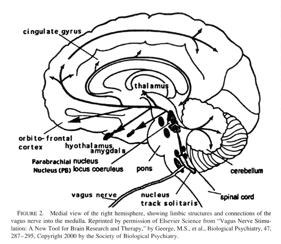 In optimal contexts, both the amygdala and the orbital prefrontal cortex have direct connections with the lateral hypothalamus (Kita & Oomura, 1981), an area known to activate parasympathetic responses through interconnections with the vagus nerve in the medulla (Brownstein, 1989). The anterior regions of the lateral hypothalamus are involved in "tonic immobility," defined as an inborn behavioral inhibition and terminal defense characterized by profound physical inactivity and lack of responsiveness to the environment that is triggered by fear generated during prey-predator confrontation (de Oliveira, Hoffmann, & Menescal-de-Oliveira, 1997). Notice the similarity of this to the immobility of the infant’s conservation-withdrawal response, to dissociation, the escape when there is no escape, the detachment from an unbearable situation, and to Bowlby’s terminal separation response, "profound detachment."