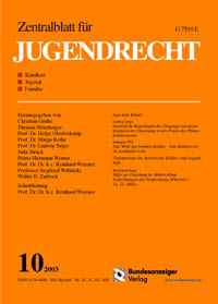 78 Zenz, Kindesmisshandlung und Kindesrechte, Frankfurt am Main 1979, S. 363; zur Beteiligung des Jugendamtes an der Umsetzung familiengerichtlicher Entscheidungen vgl. auch Wiesner, ZfJ 2003, 121, 128 ff.