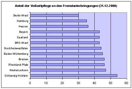 Im Vergleich mit den anderen westlichen Bundesländern liegt Schleswig-Holstein weit über dem Bundesdurchschnitt, wenn man die quantitative Verteilung von Pflegefamilienerziehung zu Heimerziehung betrachtet. Als Gründe können gesehen werden, dass die sozioökonomischen Belastungen in einem Flächenland vergleichsweise gering und Potenziale an Pflegefamilien in größerem Umfang vorhanden sind. Auf diese Situation hat die Jugendhilfe selbst wenig Einfluss. Man kann sich darüber glücklich schätzen und sie nutzen.