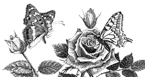 Aus dem Land der Sümpfe und Moore war ein schmucker blauer Schmetterling herübergeflogen und hatte sich gleich am ersten Morgen in eine wunderschöne Lilie von hohem Wuchs und strahlend weißer Blütenfarbe verliebt. Im Fluge gewann er ihre Gunst. Am Abend desselben Tages sah er eine dunkelrote Rose, die ihn mit ihren süßen Düften betörte. Er verliebte sich auch in sie, und sie öffnete sich ihm im Mondlicht der heraufziehenden Nacht. In den folgenden Tagen flog er jeden Morgen zur weißen Lilie und jeden Abend zur roten Rose. In vollen Zügen genoß er sein doppeltes Liebesleben. Aber je schöner die Liebe wurde, desto mehr wünschte die Lilie den Schmetterling sich auch am Abend und die Rose ihn auch am Morgen. Beide beweinten und beklagten ihr Schicksal. Ihre Köpfe hingen herunter und ihre Blätter fingen an zu welken.